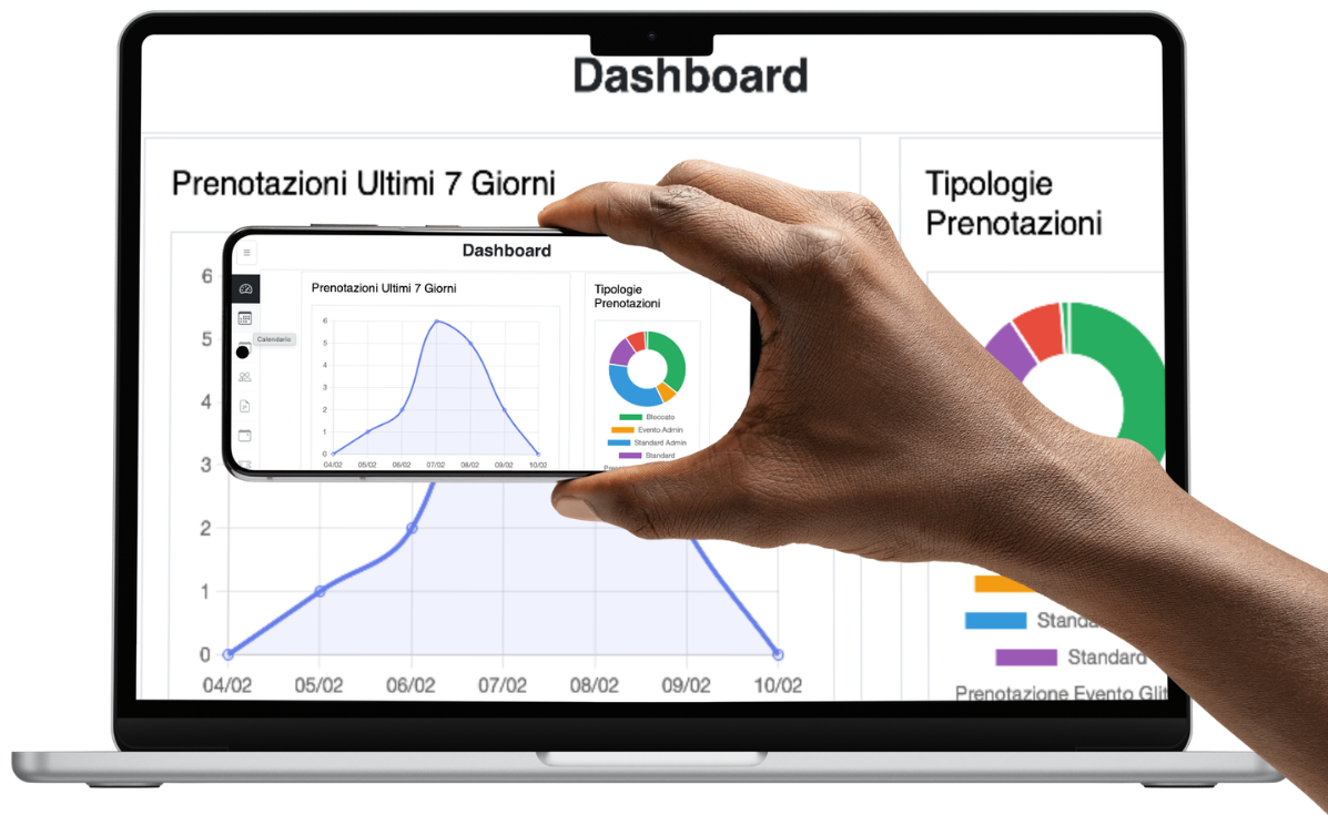 Controlla prenotazioni e calendario ovunque ti trovi, da smartphone o tablet. Tutto a portata di mano.
